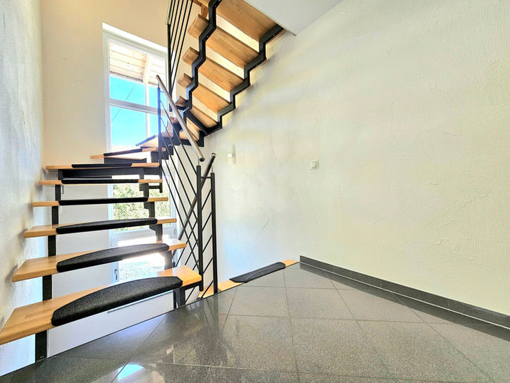 The combination of modern technology, spacious rooms, and high-quality finishes creates a living experience that impresses both in everyday life and during special occasions. The living area with direct terrace access and the fully developed basement level offer versatile usage options – from relaxed family living to social gatherings and entertaining guests.